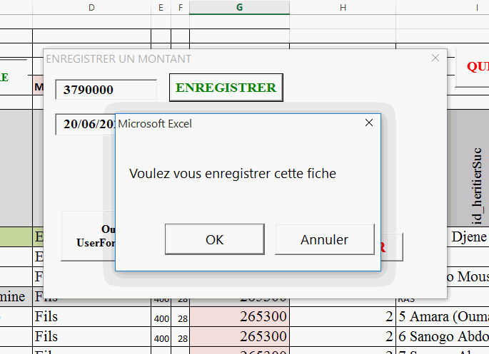 Je voudrais ajouter un Msgbox à la commande CmdButtonENREGISTRER_Click afin de décider si oui l'enregistrement doit s'exécuter