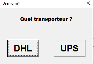 Lorsque le code "406" est ajouté à la colonne "CODE" dans mon fichier, j'ai programmé une macro qui fait apparaître un userform permettant de choisir entre deux transporteurs.