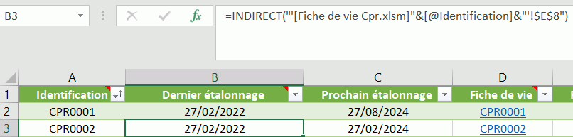 '=INDIRECT("'[Fiche de vie " & GAUCHE([@Identification];3) & ".xlsm]"&[@Identification]&"'!$E$7")