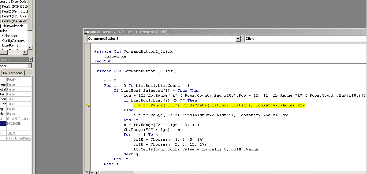 mais, là aussi, j’obtiens lesbonnes données dans la feuille ‘’BON DE SORTIE’’