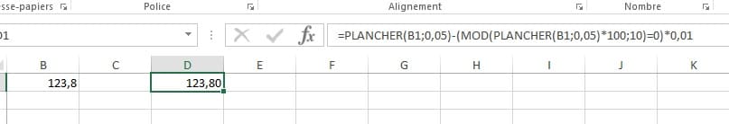 =SI(ET(DROITE(B2;1)>"5";DROITE(B2;1)<"9");PLANCHER(B2;0,05);SI(ET(DROITE(B2;1)>="0";DROITE(B2;1)<"5");PLANCHER(B2;0,09);B2))