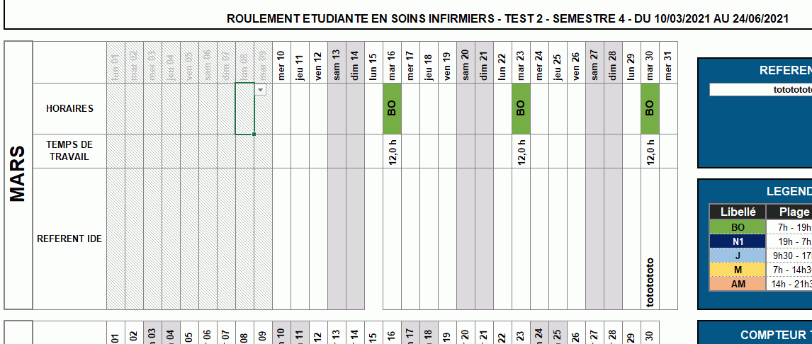 Les parties qui doivent être verrouillées sont les cellules ("HORRAIRES" et "REFERENT IDE")