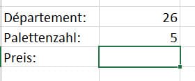 Et je voudrais simplement devoir indiquer, sur un autre onglet dans la même feuille Excel, le département, et le nombre de palettes pour avoir le prix à facturer: