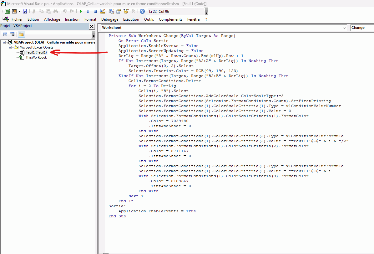 Cellule variable pour mise en forme conditionnelle