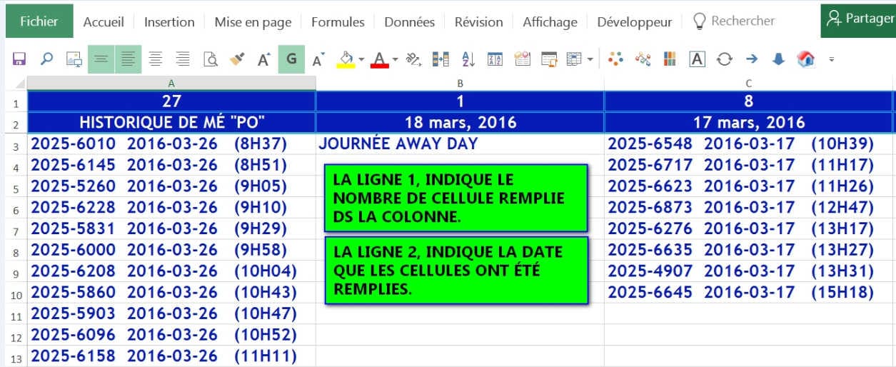 globalement, on saisit des données dans des listes infinie, sans effacer. Les dates de ce genre de tableau servent ensuite à faire des TCD ou autres types de statistiques et d'extraction de données (RECHERCHEV, SOMMPROD...)