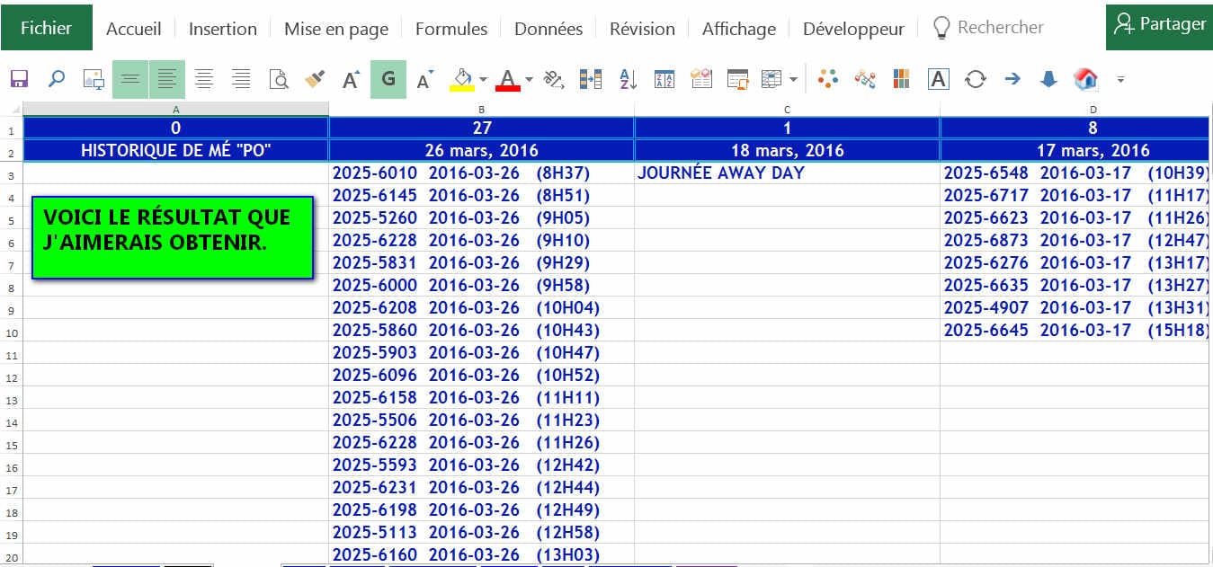 Est-ce possible en VBA, qu'à chaque jour, la colonne "A" fasse un "COUPER" et "COLLER"