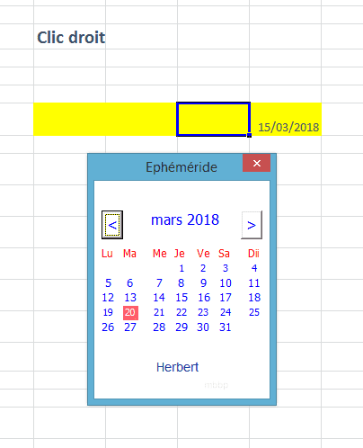 Je souhaiterai lorsque je clique sur la cellule B4 ouvrir un petit calendrier et selectionner ma date.