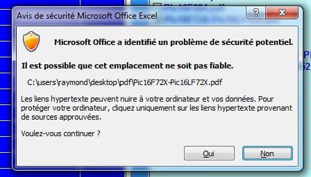 PS: >>>> Si un message "Microsoft office a identifié un problème de sécurité potentiel" apparait je ne sais pas pourquoi