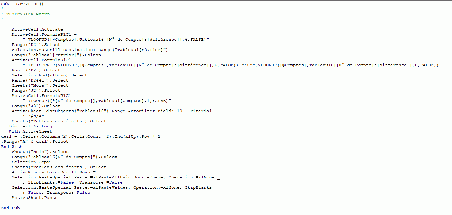j'utilise une macro qui me calcul et copie des données depuis les tableaux automatiques dans la feuille 2 vers la feuille 1, je veux copier des colonnes de la feuille 2 vers la feuille 1; sans que mes données ne changent dans le cas ou je modifie le tableau de la feuille 2.