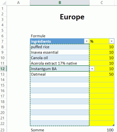 Dans le cas ci-dessous, j'ai changé la case B12 et ce changement est bien répercuter sur la feuille feuille "Europe'", range "ingredient_label_eu" mais comme vous le voyez, la zone copier est visible.