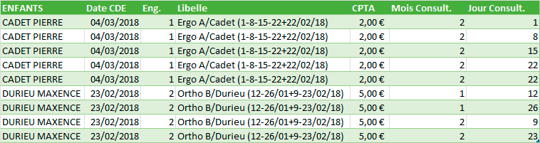 Non car il s'agit de libellés d'écritures comptable ... et donc en extraction du grand livre le libellé n'apparaît que dans une cellule ... les libellés sont composés tjs de la même façon : ortho/ ergo A/enfant suivi D ( jours/mois/année) ...