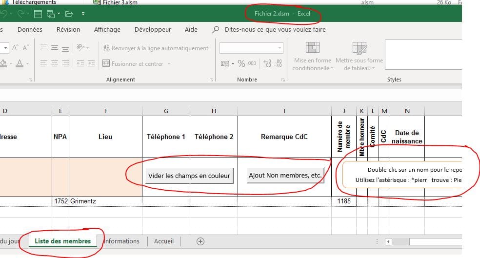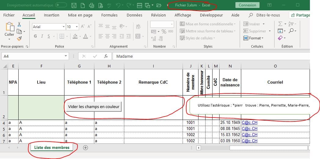 Dans le fichier 3, nouvellement crée, je n'ai pas de bouton ’Vider les champs en couleur’’ - sur la feuille ‘’Liste des membres’’.