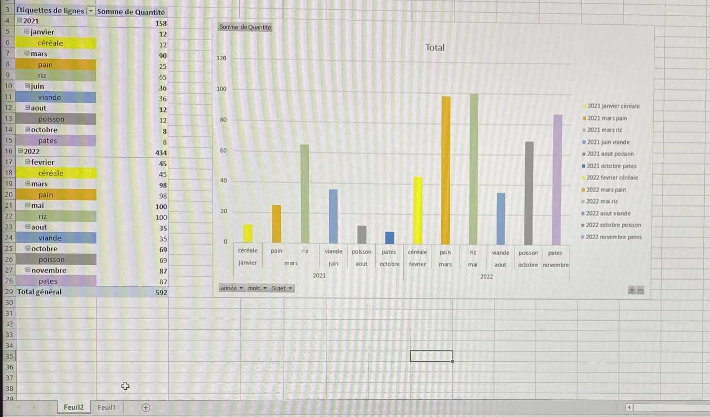 Donc j’ai mon TCD avec 2 colonnes une c’est les sujets, et la deuxième le nombre correspondant.