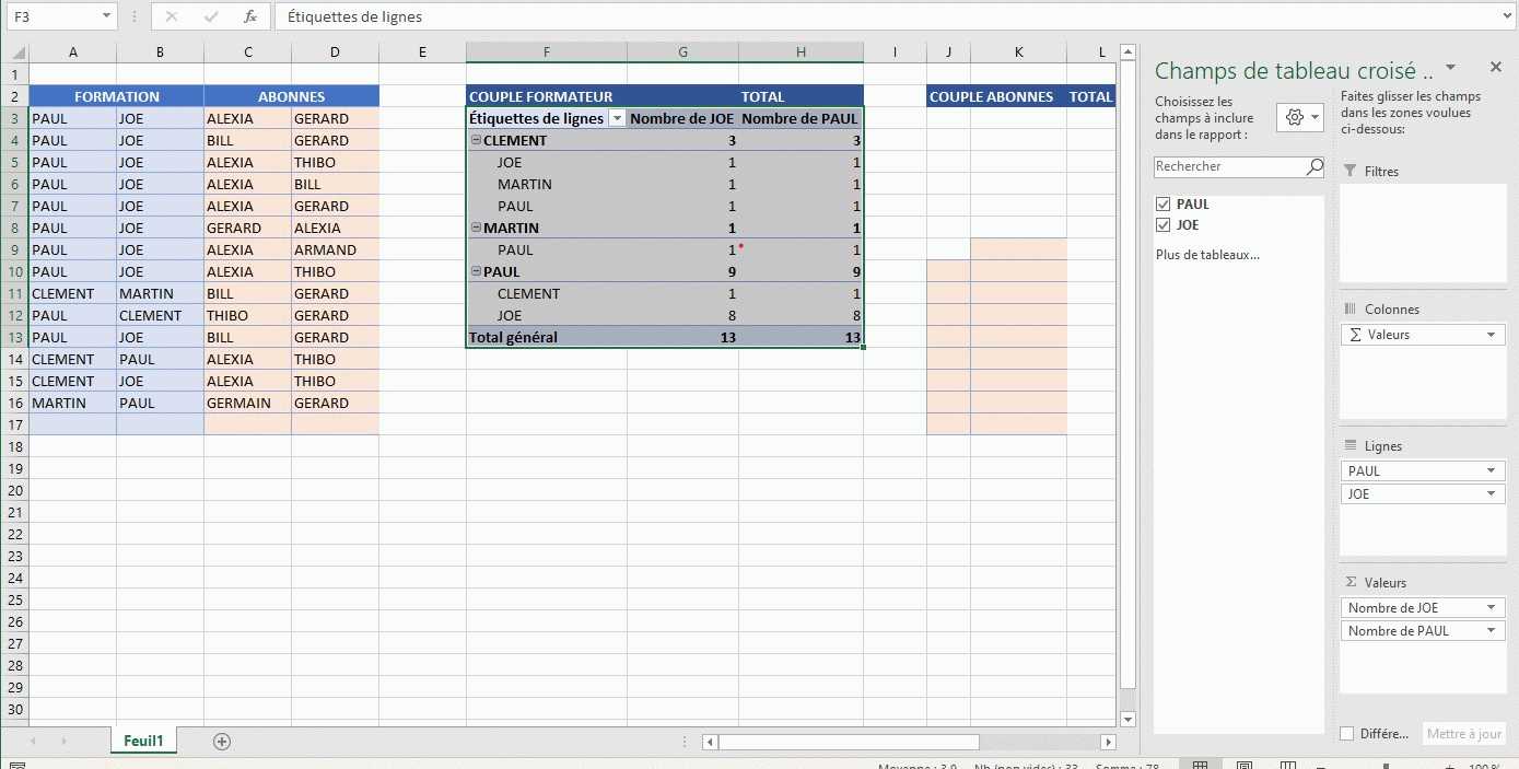 N'oublie pas le tableau structuré sinon cela n'est pas évolutif (et depuis 17 ans qu'ils existent, ils sont indispensables, aux TCD et autres)