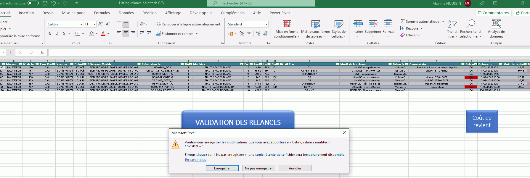 MsgBox "CSV enregistré avec le fichier \RELANCE - REBUS"