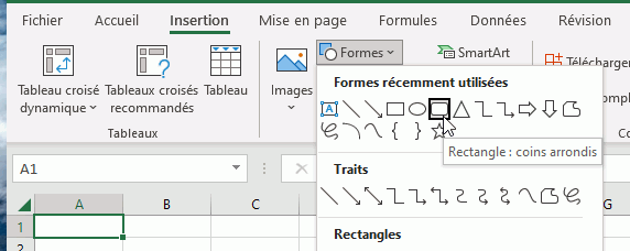 1) Sur la feuille d'Accueil ou Menu, ou autre, Menu Onsertion -> Groupe "Illustrations"