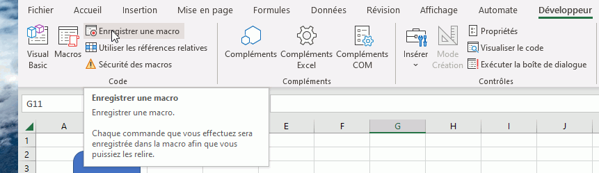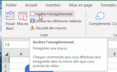 2) Menu "Développeur" -> Enregistrer une macro