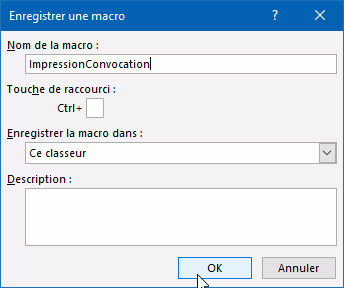 Vous choisissez le nom de la macro, puis OK