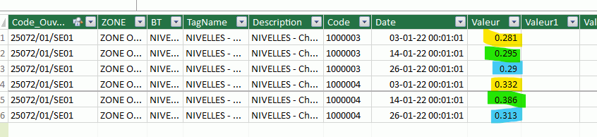 Pour un code ouvrage identique [Col1], une date identique [Col7] ; prend la valeur [Col8] du code [Col6] 1000003 et multiplie là par la valeur du code 1000004.