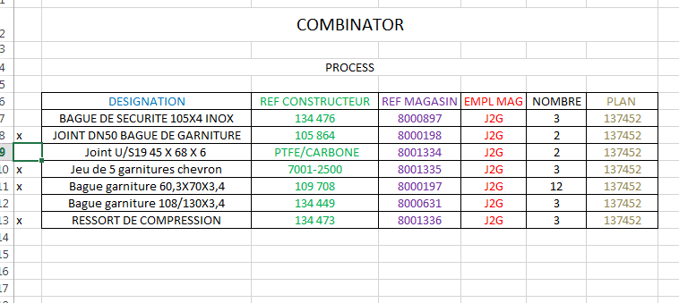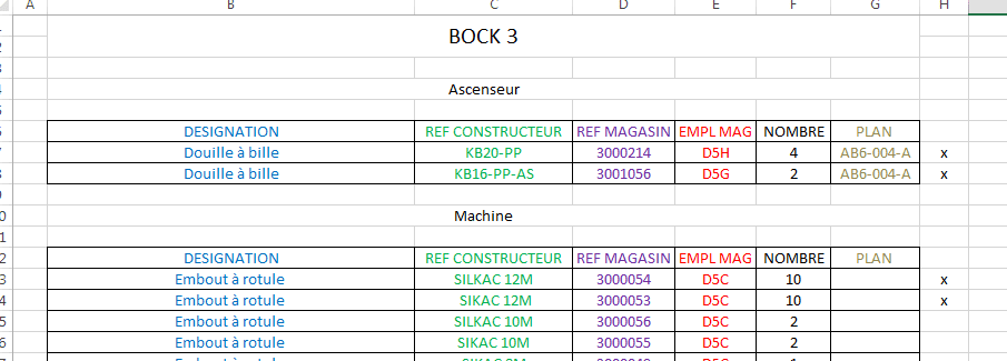 Je vous explique ce que je souhaiterai, j'ai un listing de pièces dédié à une ligne de production donc plusieurs feuilles par outils. Ces feuilles sont divisé en tableau par mouvement ou ensemble.