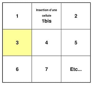 Ces deux images simplistes, présentent ce que j'aimerais comme déplacement de mes cellules lorsque j'en intègre une nouvelle.