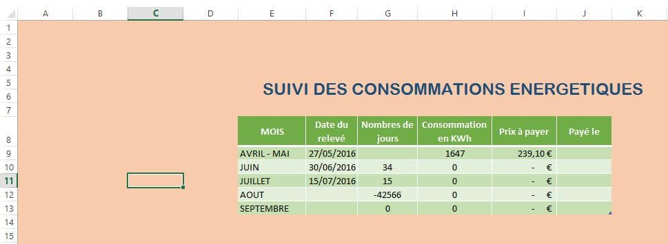 Je fais un tableau de suivi des consommations énergétiques, pour cela j'indique une colonne "date du relevé" et une "nombre de jours" dans mon tableau,