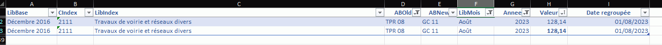 D'ailleurs, si dans l'onglet Index je mets cette valeur de TPR 08 pour août 2023, à 0, çà me renvoit la valeur de 128.14 dans l'onglet MON PROJET !!