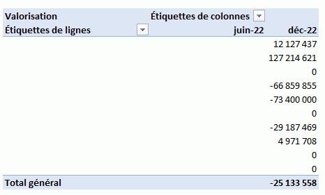 J'ai ensuite afficher les valeurs en "différence par rapport à" pour avoir la variation entre les 2 périodes ; pour l'exemple ==> +10