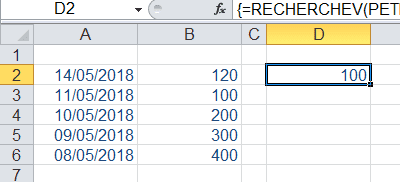 sauf que dans ce cas je n'ai pas la date du 13/04/2018 et du 12/05/2018 donc je veux qu'excel m'affiche le prix du 11/05/2018 et ainsi calculer la variation prix du 14/05/2018 p/p au prix du 11/05/2018