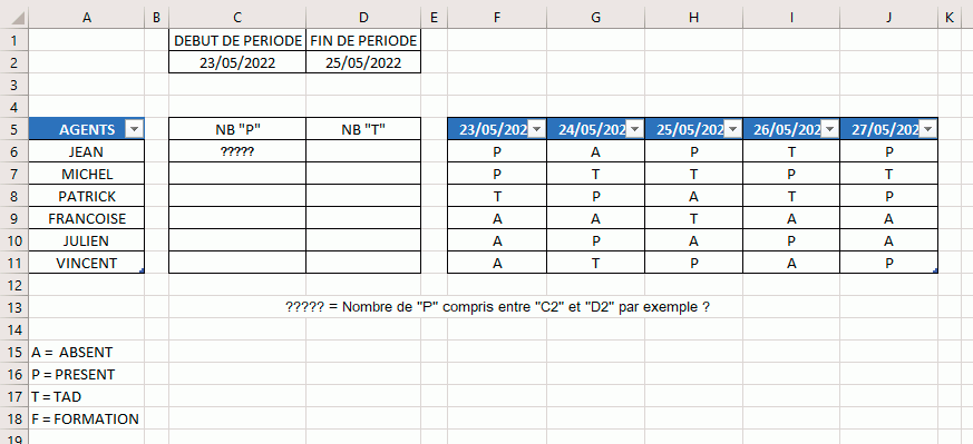 En considérant que A et F sont "ABSENTS", est ce que je peux reformulé comme ceci ?