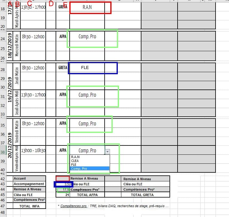 J'ai sur me feuille émargement un menu déroulant pour chaque demi journée.