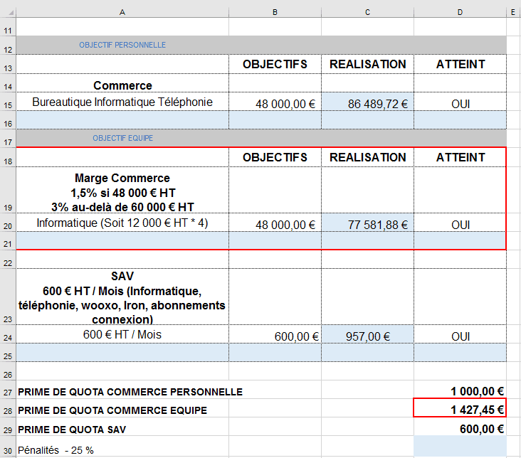 Pour mes commerciaux je souhaite mettre en place une formule qui calculerait automatiquement le montant d'une prime.