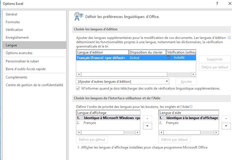 C'est dans l'onglet des formules qu'il faut mettre la langue voulue pour l'interprétation des formules,