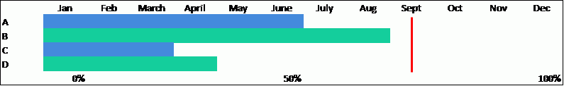 On interprète les données comme ça: "Aujourd'hui le 10 septembre pour A on a consommé 50% des ressources, on a donc de la marge pour la fin de l'année. Pour B on a consommé à peu près 65%, attention on finira surement proche de la limite".