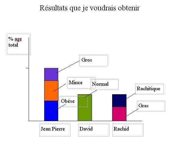 Je voudrais que chaque colonne soit divisée dans les diverses catégories: gros, mince et obèse pour JP etc...