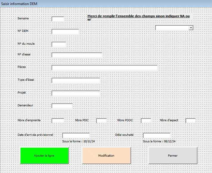 exemple : on ajoute un bouton Modifier qui va alimenter une combobox qui liste les numéros d'essai. En choisissant dans la liste on rapatrie toutes les infos de la ligne dans les textbox de l'USF. De là on permet d'uniquement changer le num de semaine