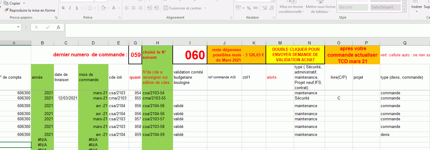Cette saisie vient se compléter en automatique par un numéro qui s'incrémente par rapport à la ligne précédente chronologiquement exemple précédente commande cma/2103-050 suivante cma/2103-051