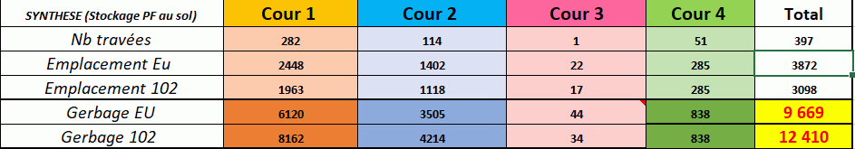 J'ai par exemple dans ma cour 1 : 282 Travées et parmi les 282 travées j'ai soit 2448 emplacements Europe au sol soit 1963 emplacements 102 au sol. C'est soit l'un soit l'autre... Je voudrais de votre aide pour savoir par exemple dans ma cour 1 : Comment faire en sorte que dans mes 282 travées, j'ai 60% de travées 102 et 40% travées Europe