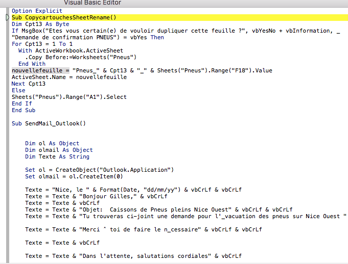Texte = Texte & "Tu trouveras ci-joint une demande pour l'_vacuation des pneus sur Nice Ouest " & vbCrLf & vbCrLf