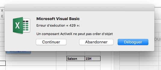Erreur d'exécution « 9 »: