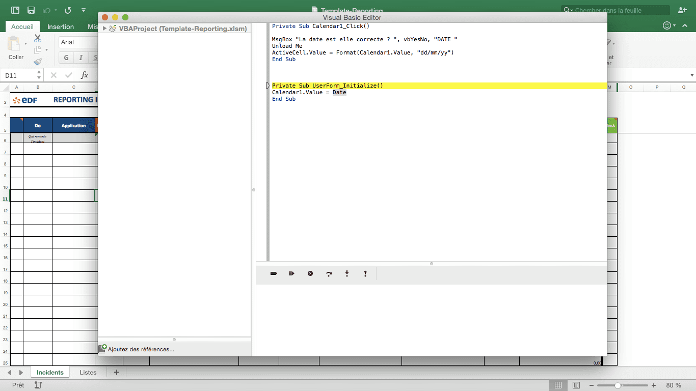 J'ai fais un fichier Excel de Reporting des Incidents qui contient un code macro pour un calendrier. Le fichier fonctionne et la macro fonctionne correctement chez moi mais des que je l'ai fait testé par 2 collègues, ils ont le message d'erreur suivant « Impossible de charger un objet car il n’est pas disponible sur cet ordinateur ».