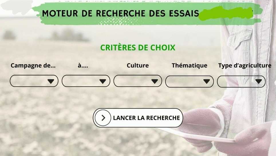 Etape 3 : Un fichier s'ouvre avec la liste de l'ensemble des essais correspondant aux critères de recherche. Apparaît uniquement un tableau avec deux colonnes : colonne 1 = l'année de l'essai (la campagne) et colonne 2 = le nom de l'essai (lorsqu'on clique sur le titre de l'essai, l'essai s'ouvre en PDF car il est attaché à un lien HyperText dans la BDD)