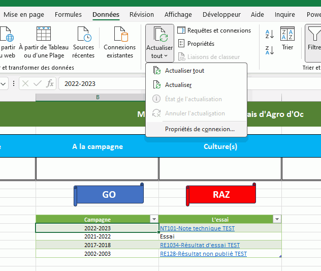 3 - doit continuer à fonctionner si les listes déroulantes de choix sont complétées (feuille "Listes" de l’Excel : par exemple ajout d'une "culture" ou d'une "thématique")