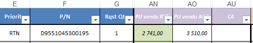 Sauf si en colonne E il y a le texte "AOG ou "CRIT", faire le même calcul mais avec le PU de la colonne AO.