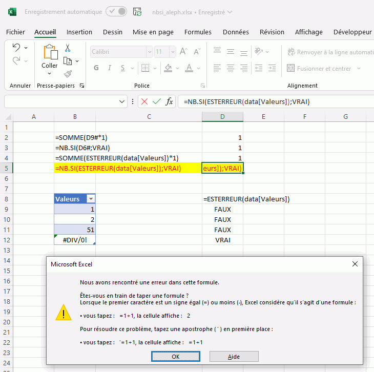 Mon premier réflexe a été de vouloir utiliser un NB.SI pour compter le nombre de cellule en erreur.
