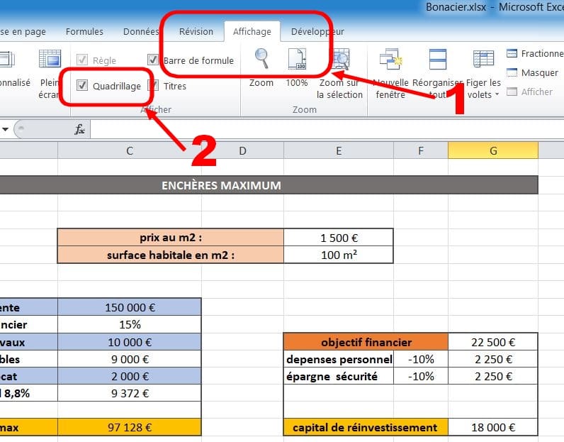 2 ) déduire objectif financier : 15 % soit 22 500 € ( avec possibilité de rentrer le % voulu et de voir le montant en euros)