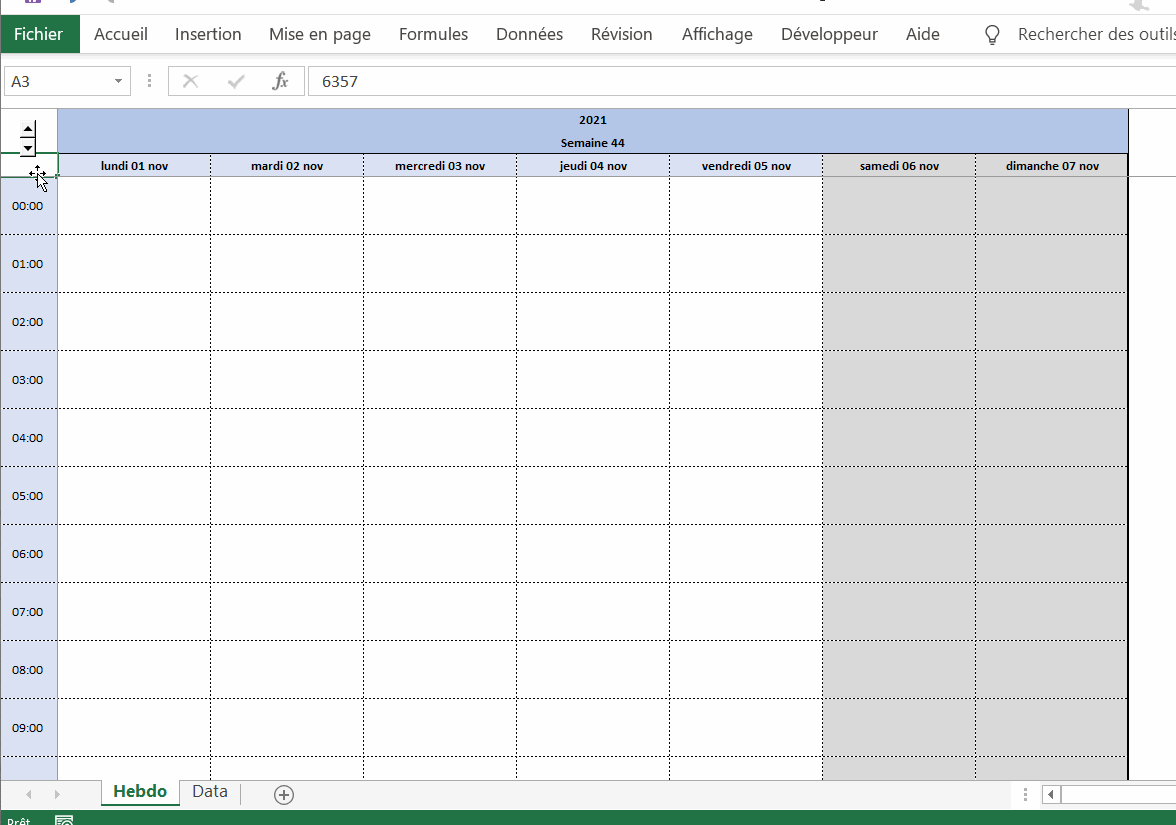 Je souhaite créer un planning à partir d'une base de données (onglet Data) variable toutes les semaines.