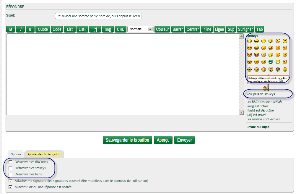 Et lorsque tu réponds à un sujet, contrôle les options ci-dessous :