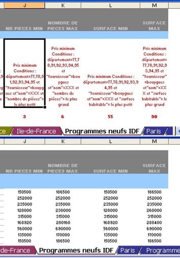 Sur la Feuille "programmes neufs IDF en C5