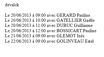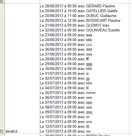 Par exemple x a un rendez-vous à ..h.. avec y mais n'est pas repris dans le publipostage